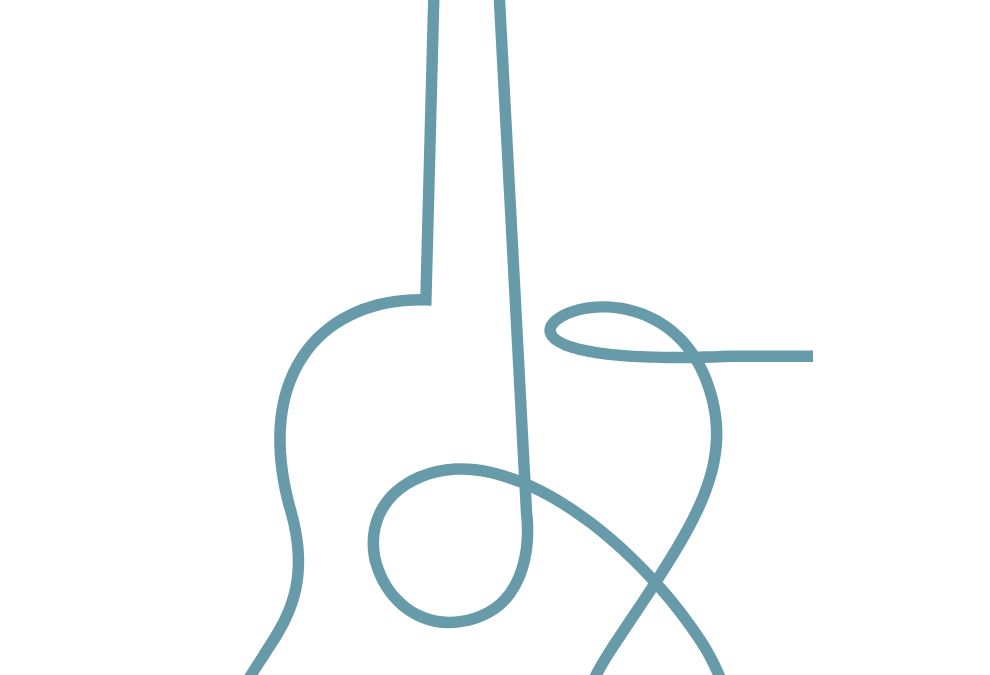 graphic of blue abstract drawing of a guitar