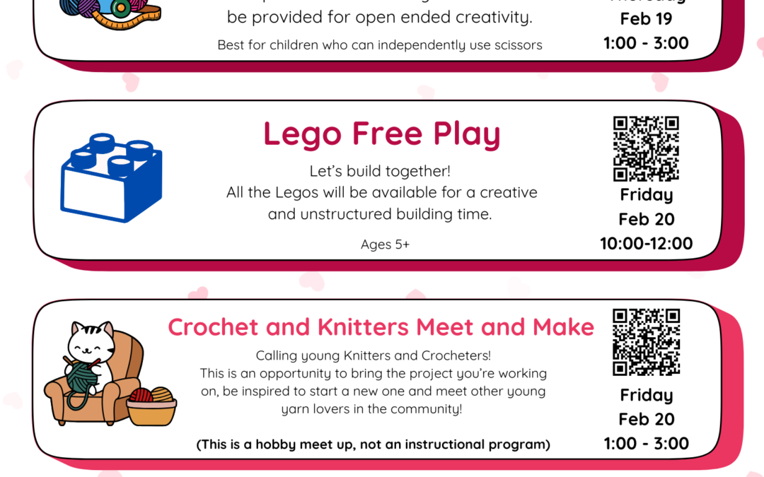 Flyer for Feb Vacation 2026 Childrens Activities for West Falmouth Library
