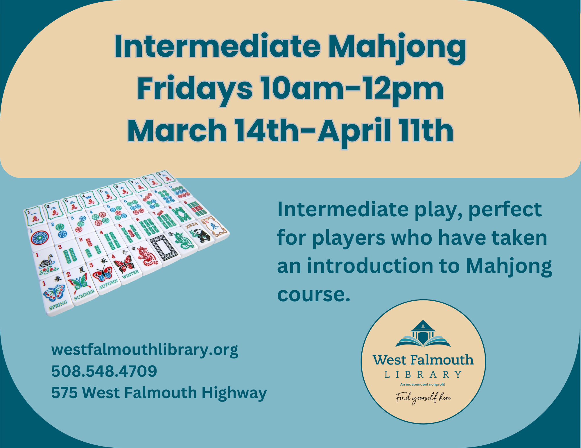 fridays Intermediate Mahong flyer for west Falmouth Library