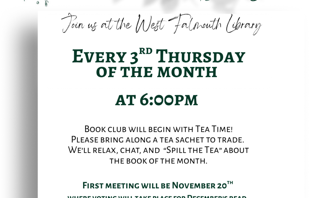 Fall 2025 Tea Time Bookclub Flyer for West Falmouth Library